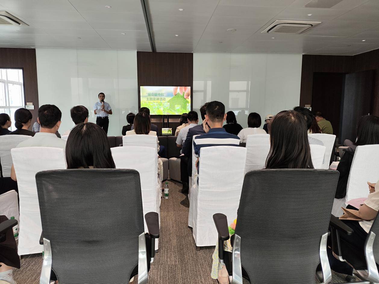 為了廣泛發(fā)動倡導(dǎo)綠色低碳社會新風尚,廣州市商務(wù)局和生態(tài)環(huán)境局開展“展會碳中和”主題系列宣講活動,多次赴會展企業(yè)、行業(yè)協(xié)會,現(xiàn)場宣講碳中和理念,探討交流展會碳中和典型案例經(jīng)驗和落地途徑,讓綠色辦展、低碳辦展的理念共識迅速凝聚。