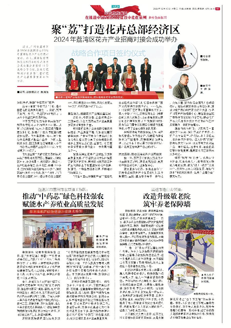 新快報(bào)訊 花地接花津,四時(shí)皆似春。12月6日,荔灣區(qū)在1906科技園舉辦2024年荔灣區(qū)花卉產(chǎn)業(yè)招商對(duì)接會(huì)。會(huì)上,荔灣區(qū)招商和農(nóng)業(yè)部門與相關(guān)花卉協(xié)會(huì)及頭部企業(yè)簽訂11份戰(zhàn)略合作協(xié)議,荔灣與花都兩區(qū)農(nóng)業(yè)部門簽訂花卉產(chǎn)業(yè)高質(zhì)量發(fā)展合作協(xié)議。