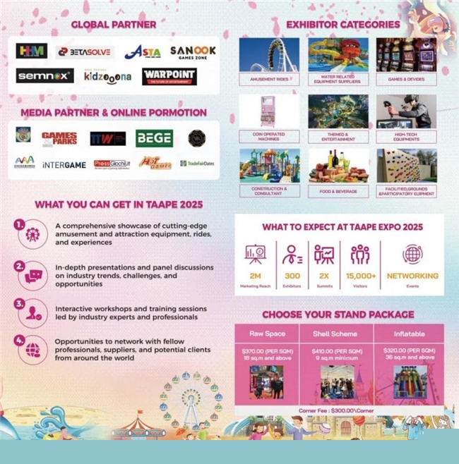 由中國動漫集團有限公司、泰國COMPASS集團、廣東鴻威會展集團聯(lián)合主辦的2025泰國文化用品、旅游裝備及景區(qū)游樂設(shè)施博覽會(TAAPE2025)是泰國知名游樂休閑類展會。該展會設(shè)立了水上裝備、游樂設(shè)施、戶外游樂、電子游樂設(shè)備等多個主題,展出內(nèi)容豐富多樣,包括IP授權(quán)與合作展區(qū)、衍生品設(shè)計與制造展區(qū)、手辦與模型展區(qū)等多個展區(qū)。此次展會恰逢中泰建交50周年重要歷史時刻,依托泰國作為東盟樞紐的區(qū)位優(yōu)勢,創(chuàng)新性地將傳統(tǒng)文化用品、旅游裝備與前沿元宇宙技術(shù)相結(jié)合,打造了全方位、多層次的文化貿(mào)易交流平臺。