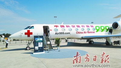 北京紅十字會999急救中心的灣流G550航空醫(yī)療專機首次亮相。通訊員 王有星 攝 |