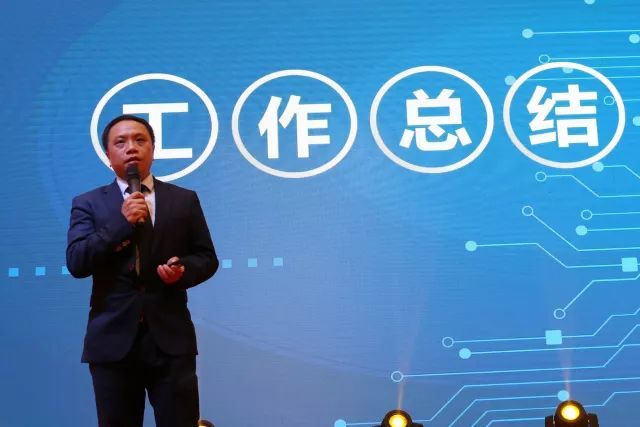 集體合唱結(jié)束后,王照云董事長信步走上舞臺(tái),向現(xiàn)場嘉賓與鴻威全體員工進(jìn)行工作匯報(bào)。