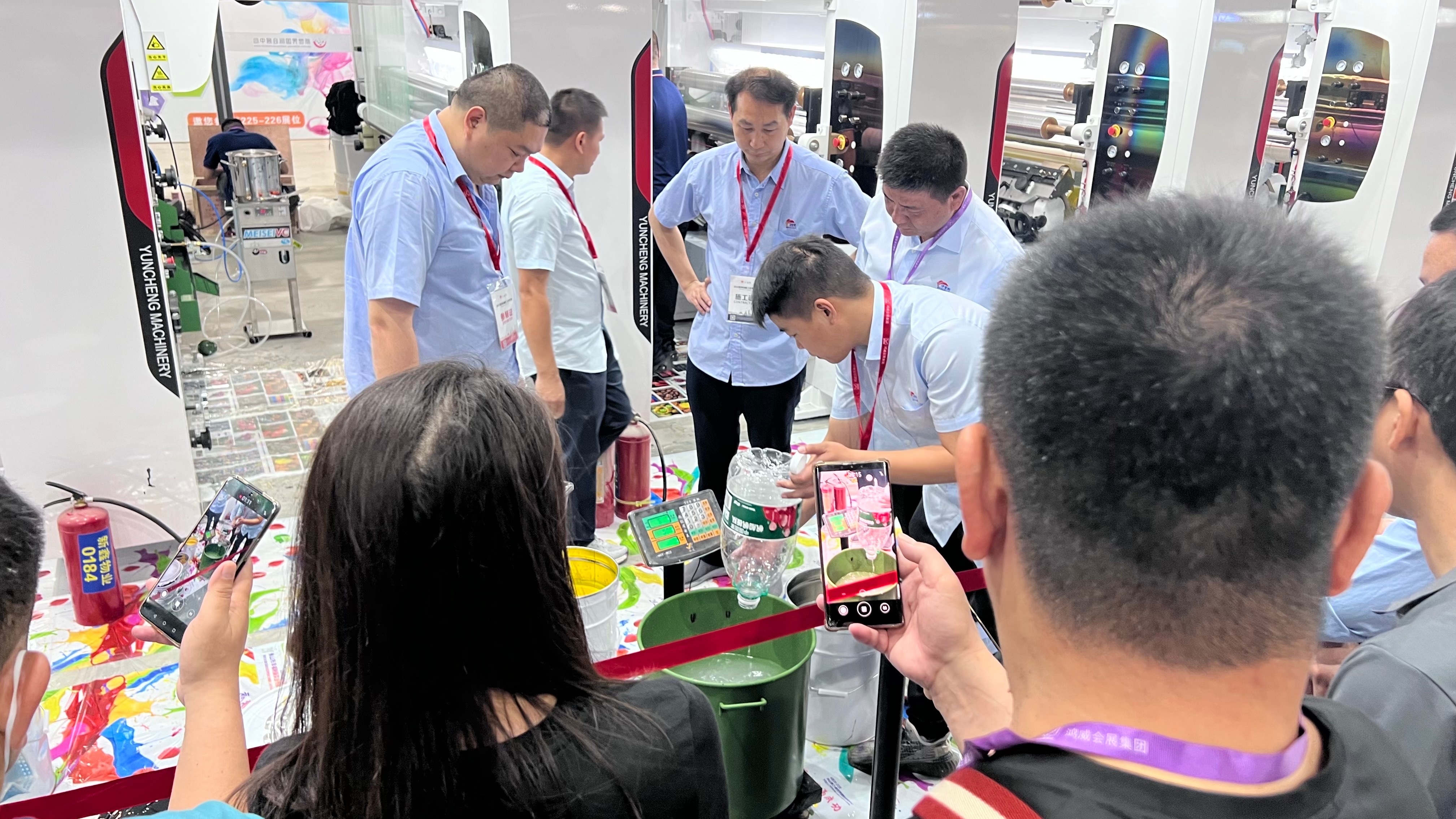 “這是印刷區(qū),參展企業(yè)的油墨通過設(shè)備印刷出來,油墨干沒干?效果好不好?客商都能直觀看到?!痹诓┯[會的演示區(qū),參展設(shè)備企業(yè)負責(zé)人告訴記者,主辦方專門設(shè)置了演示區(qū),給客商最直觀的感受。演示開始后,大型設(shè)備高速運轉(zhuǎn),演示區(qū)外排起了長龍,一些客商拿出手機,拍攝油墨材料及印刷成品。